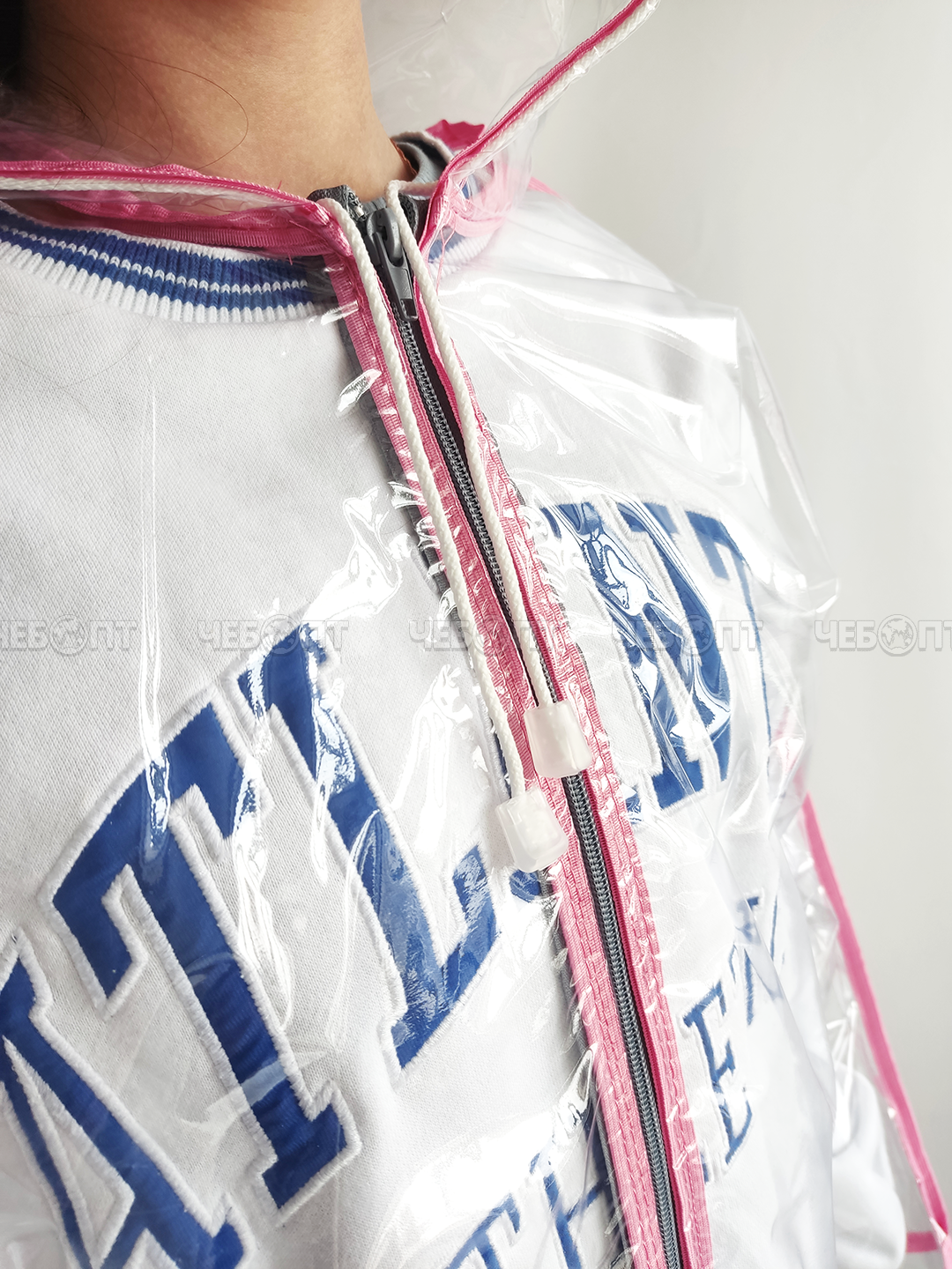 Плащ-дождевик детский с капюшоном для мальчика и девочки прозрачный на молнии, ЧЕБПРО, 12-14 лет, 152-164 см, Арт. ПРОЗДЕТ/розовый, МПС [15] СобПр