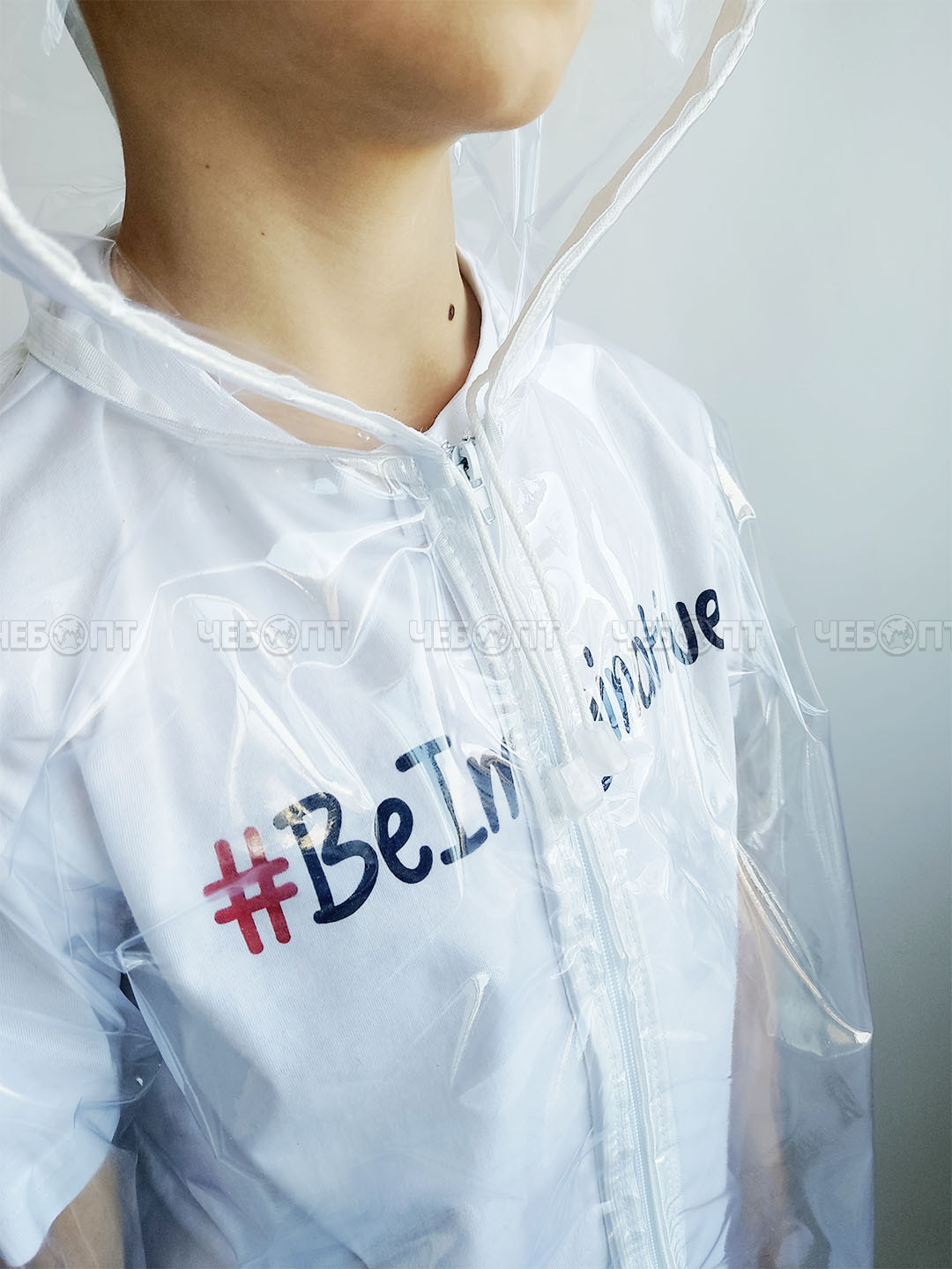 Плащ-дождевик детский с капюшоном для мальчика и девочки прозрачный на молнии, ЧЕБПРО, 12-14 лет, 152-164 см, Арт. ПРОЗДЕТ/белый, МПС [15] СобПр