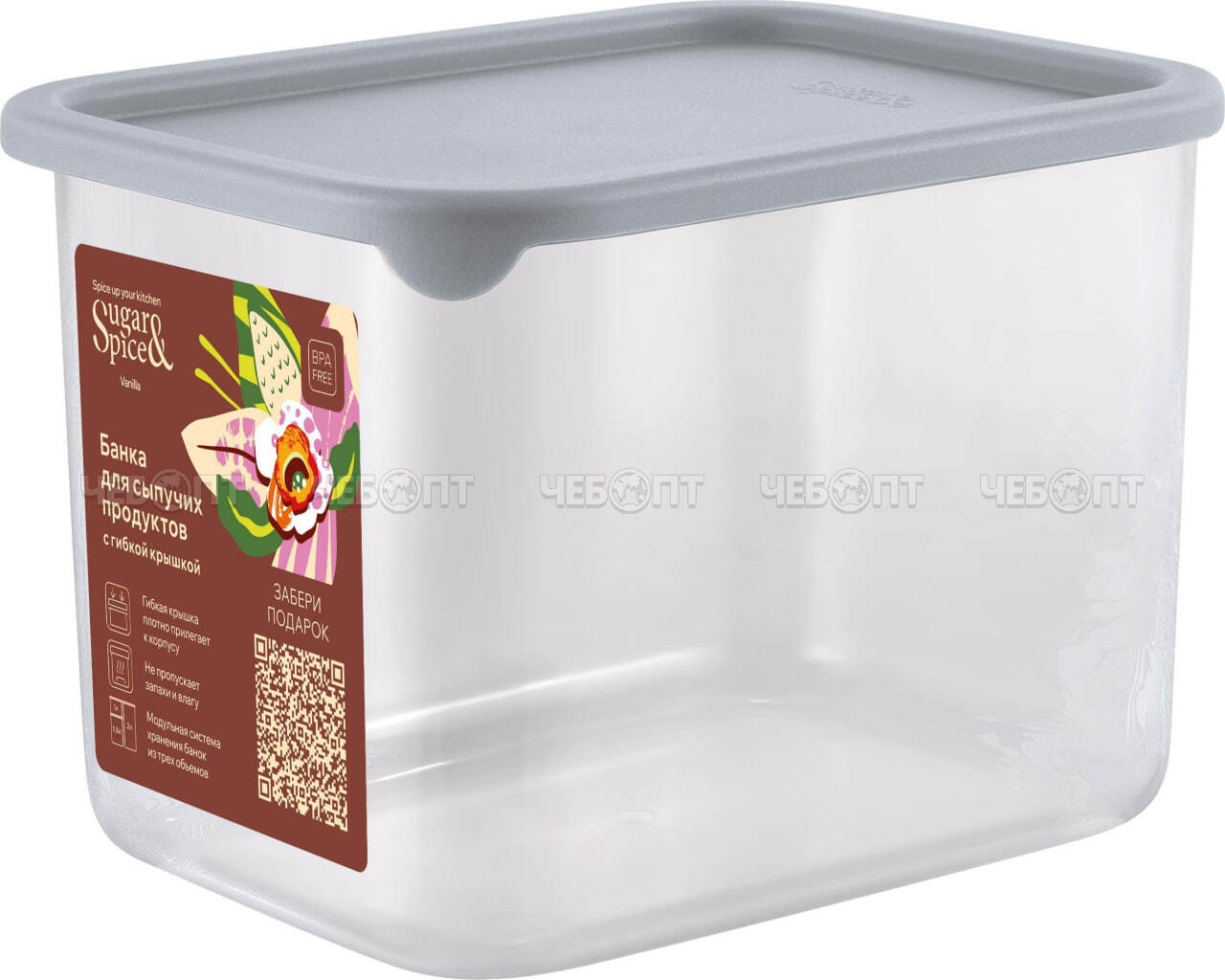 Торгово-производственная компания ЧЕБОПТ продает Банка для сыпучих продуктов 1,0 л ПРЯМОУГОЛЬНАЯ Sugar&Spice 140*105*97 мм гибкая крышка ТРЮФЕЛЬ арт. SE168110025 [16] ПЛАСТИК РЕПАБЛИК. Информация по приобретению товара - 8-800-200-84-11.