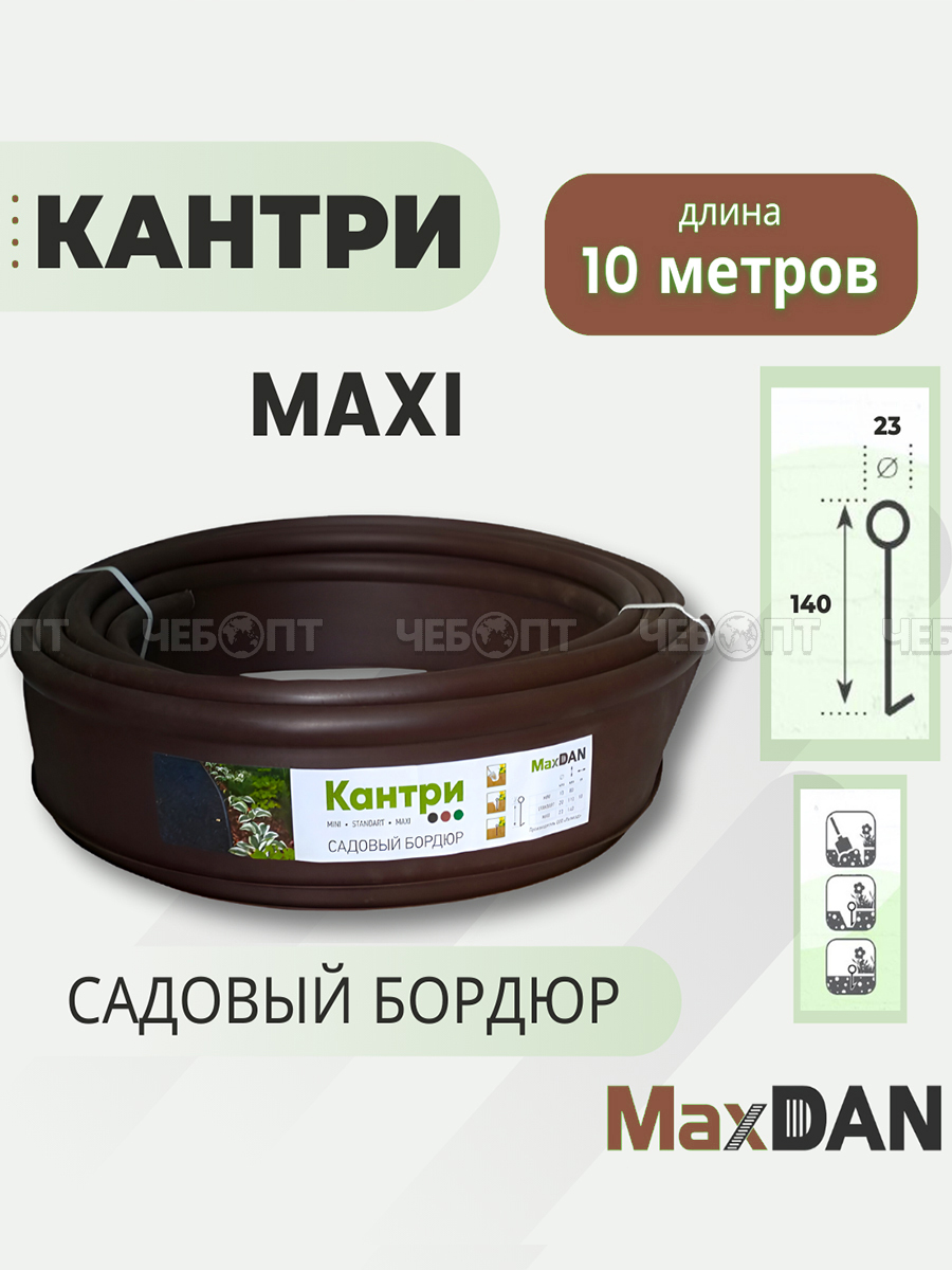 Торгово-производственная компания ЧЕБОПТ продает Бордюр садовый КАНТРИ МАКСИ КОРИЧНЕВЫЙ высота 14 см, длина 10 м пластиковый, Б-1000.23.14-ПП арт. 82402-К [1]. Информация по приобретению товара - 8-800-200-84-11.