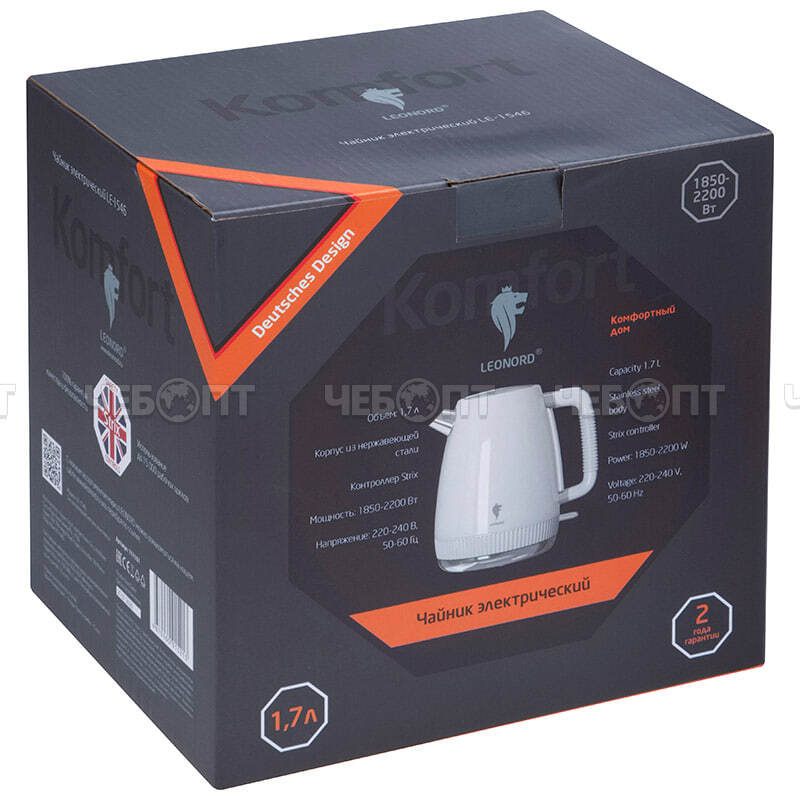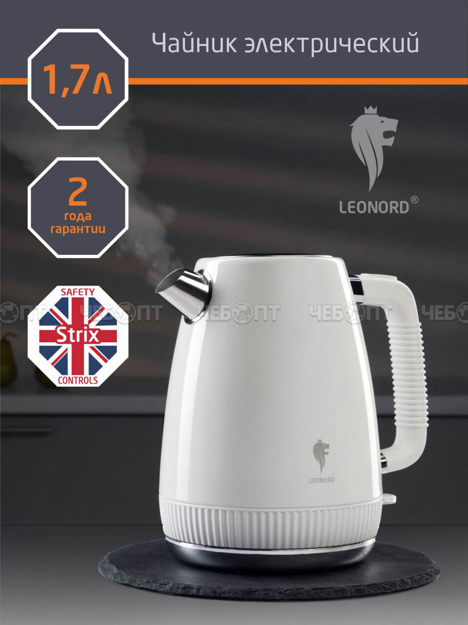 Торгово-производственная компания ЧЕБОПТ продает Чайник электрический 1,7 л металлический (нержавеющая сталь) LEONORD LE-1546 БЕЛЫЙ, световой индикатор, мощность 2200 Вт, арт. 111161 [6] СКРАП. Информация по приобретению товара - 8-800-200-84-11.