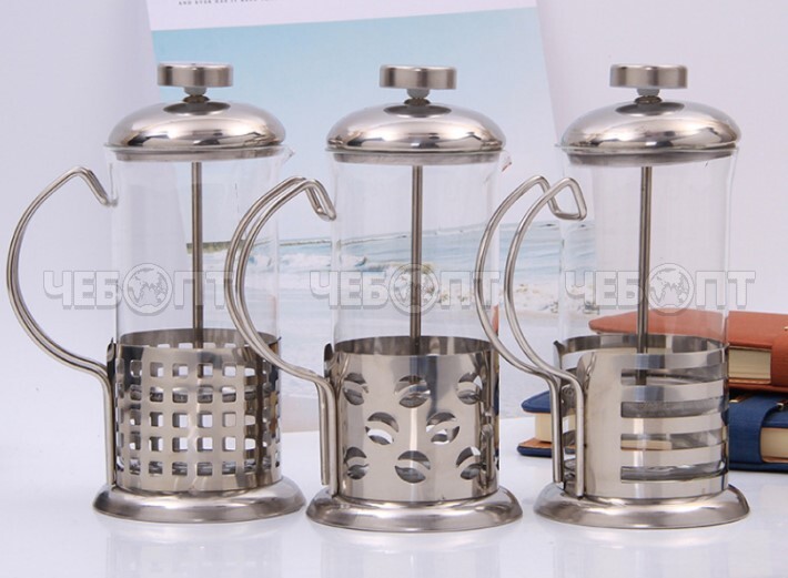 Торгово-производственная компания ЧЕБОПТ продает Чайник заварочный стеклянный (френч-пресс) 350 мл корпус нержавеющая сталь, стальной фильтр арт. B003-350ML, 260079 $$ [60] GOODSEE. Информация по приобретению товара - 8-800-200-84-11.