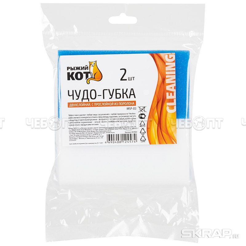 Торгово-производственная компания ЧЕБОПТ продает Чудо-губка меламиновая MSp-03 двухслойная набор 2 шт 115*60*23 мм арт. 003960 [72] СКРАП. Информация по приобретению товара - 8-800-200-84-11.