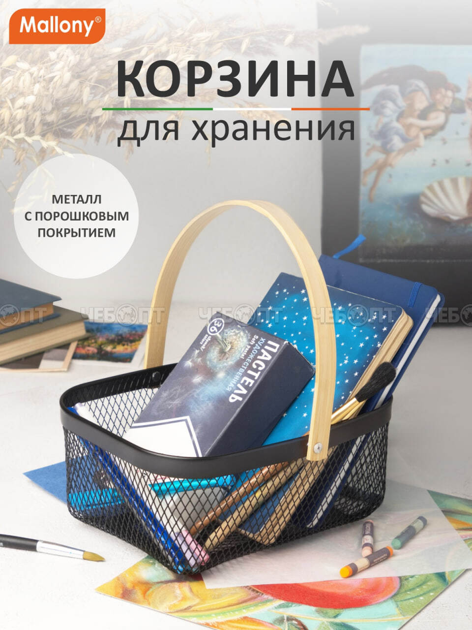 Торгово-производственная компания ЧЕБОПТ продает Корзина универсальная металлическая с бамбуковой ручкой, прямоугольная 230*190*100 мм, арт. 310904 [12] СКРАП. Информация по приобретению товара - 8-800-200-84-11.