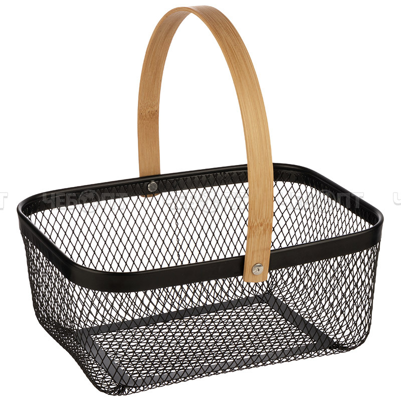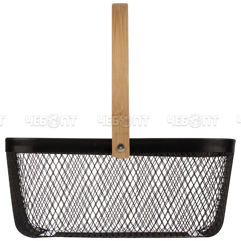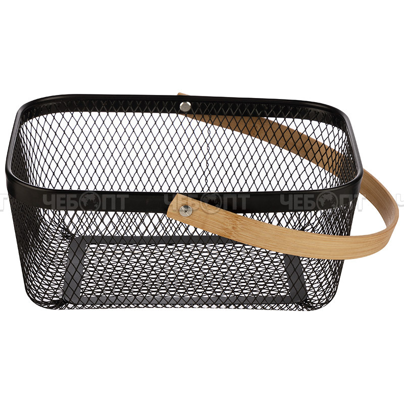 Корзина универсальная металлическая с бамбуковой ручкой, прямоугольная 230*190*100 мм, арт. 310904 [12] СКРАП