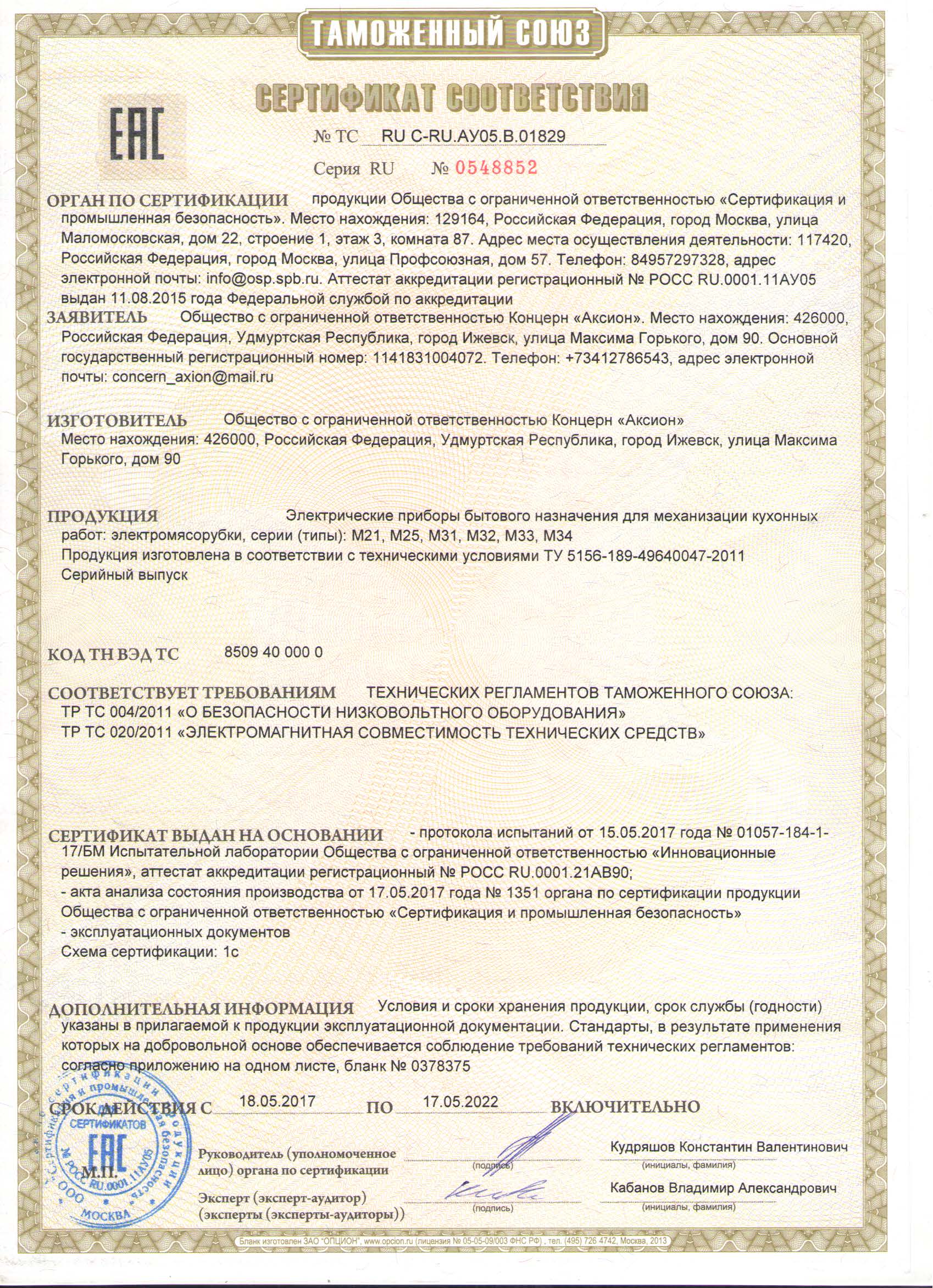 Торгово-производственная компания ЧЕБОПТ продает Мясорубка электрическая АКСИОН М 31.02 с РЕВЕРСОМ, с шинковкой, соковыжималкой, max. мощность 1500 Вт, произ. 100 кг/ч [3]. Информация по приобретению товара - 8-800-200-84-11.