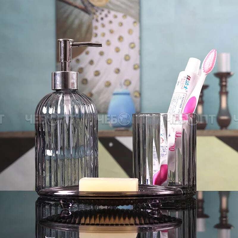 Торгово-производственная компания ЧЕБОПТ продает Набор для ванной комнаты 3 предмета (мыльница, дозатор, стаканчик) стеклянный, серый, в индивидуальной упаковке арт. 300690 $ [16] GOODSEE. Информация по приобретению товара - 8-800-200-84-11.