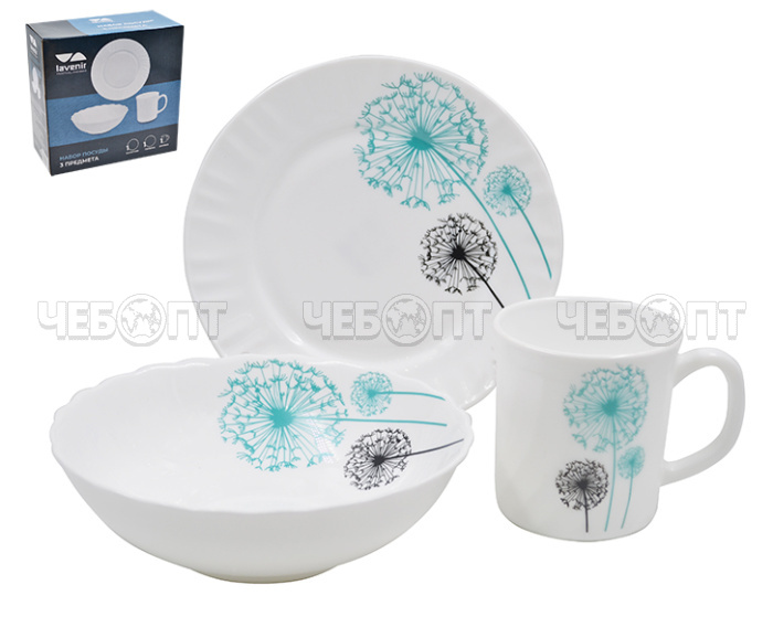 Торгово-производственная компания ЧЕБОПТ продает Набор для завтрака 3 предмета ОДУВАНЧИКИ (салатник 630 мл, тарелка 18 см, кружка 250 мл) 3PCB 7007 арт. 99314 [12] МИР ПОСУДЫ. Информация по приобретению товара - 8-800-200-84-11.