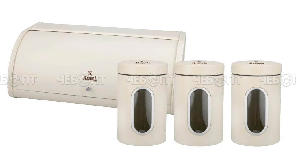 Торгово-производственная компания ЧЕБОПТ продает Набор хлебница с крышкой металлическая RASHEL 45*27*18 см, +3 банки для хранения d-11 см, высота 18 см, КРЕМОВЫЙ арт. R-3017 [4]. Информация по приобретению товара - 8-800-200-84-11.
