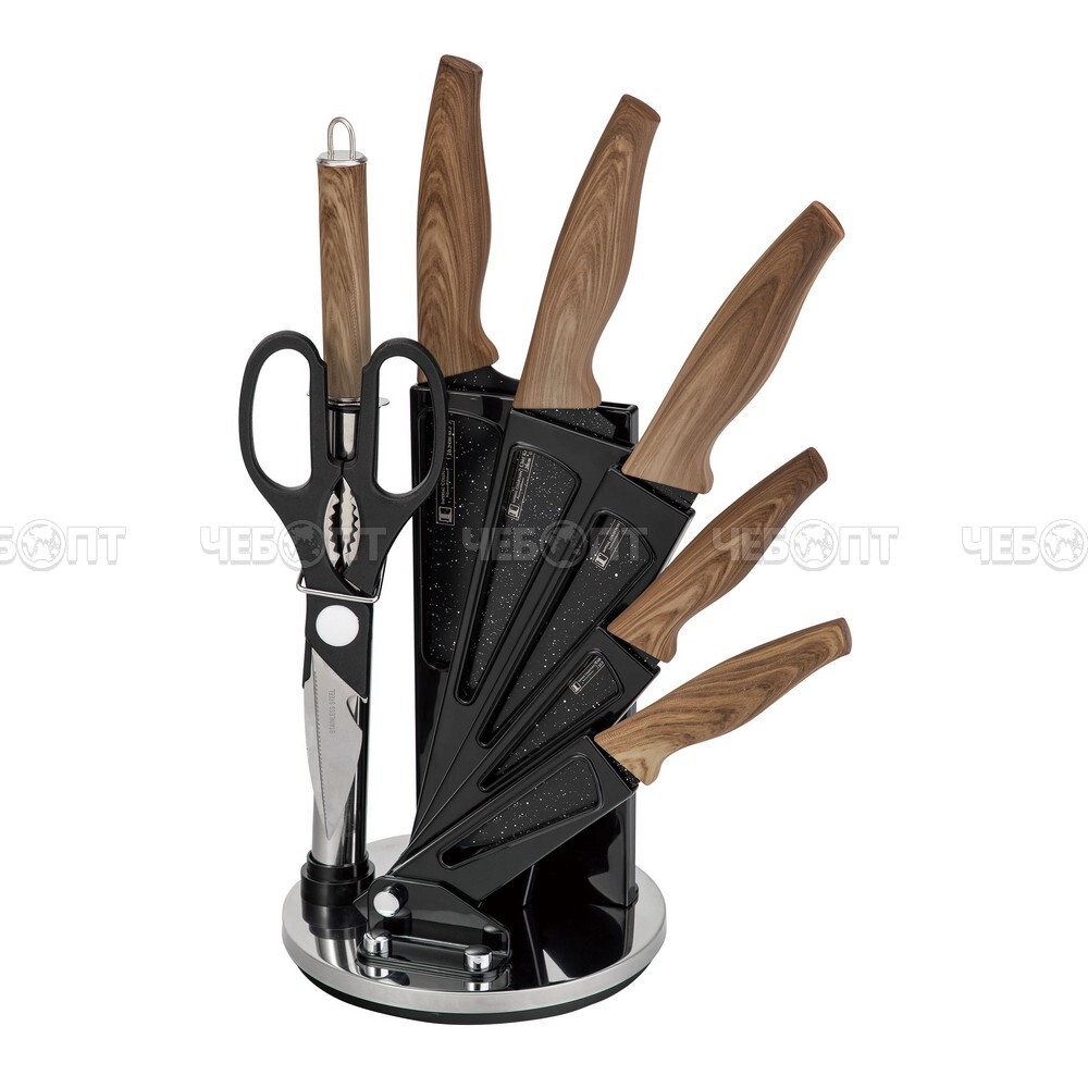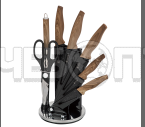 Набор кухонных ножей 8 предметов (разд-ый, пов-ой, для хлеба, унив-ый, для овощей, ножницы, мусат) на подставке, арт. 260061, 260062 $$ [12] GOODSEE