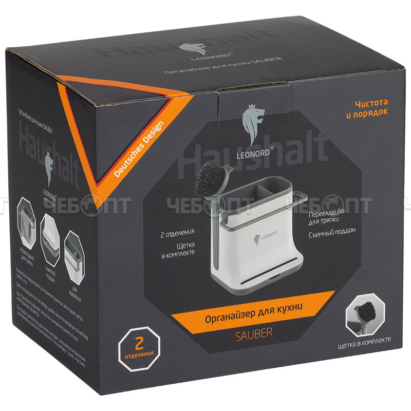 Торгово-производственная компания ЧЕБОПТ продает Органайзер-контейнер для кухни SAUBER 2 отделения щетка в коплекте 140*108*130 мм арт. 105846 [12] СКРАП. Информация по приобретению товара - 8-800-200-84-11.