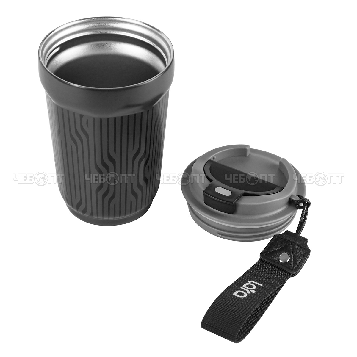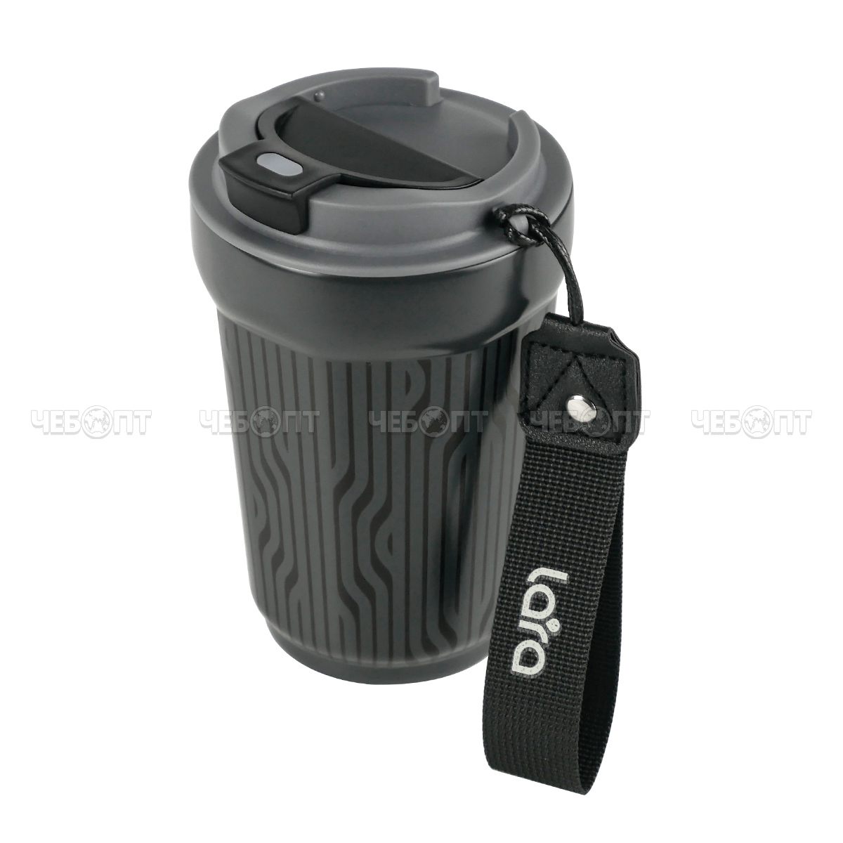Термокружка 0,42 л LARA LR04-29 КАРБОН двойные стенки, сталь, ремешок, прорез. дно, крышка/клапан [24]